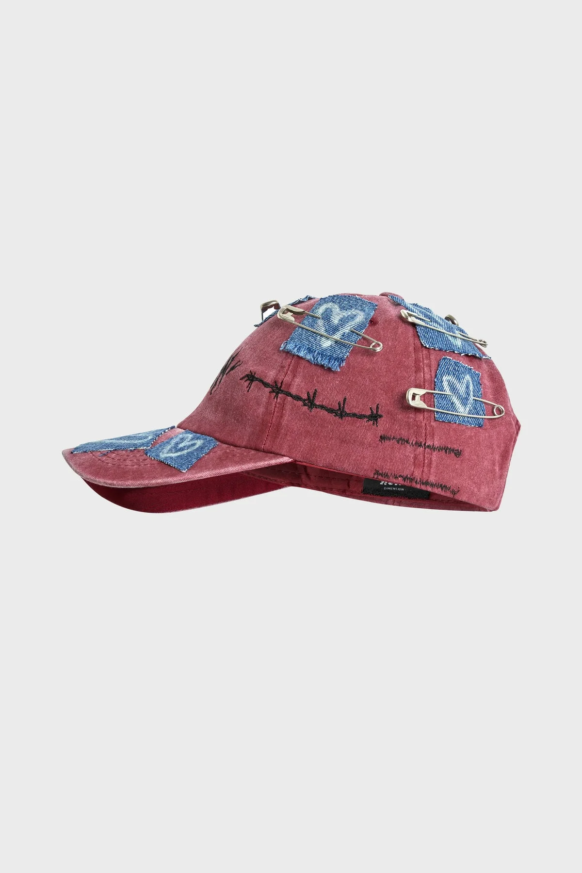 - Safety Pins - Hearts on Jeans - Washed Red - 100% Cotton